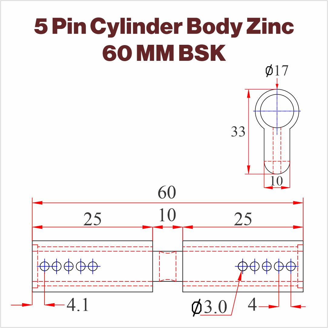• 60 MM BSK Cylinder Lock,  80 Gm.
